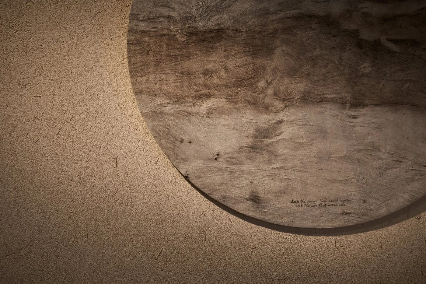 • The principle of body and land as one is translated into a spatial language that feels immediate and tangible. Drawing on memories of being immersed in nature, the design recalls sunlight filtering through overlapping leaves, scattering gentle shadows across the ground. This imagery is reinterpreted in the ceiling, where wooden strips are arranged like a canopy. They soften direct light while discreetly concealing modern equipment. The result is an atmosphere of stillness, where breathing slows and the senses gradually attune to the environment.